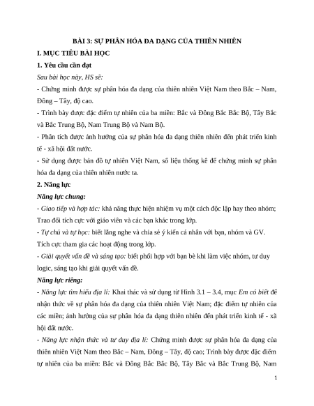 hóa đa dạng của thiên nhiên nước ta. 2. Năng lực