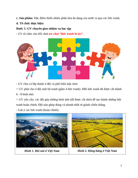 c. Sản phẩm: Đặc điểm thiên nhiên phân hóa đa dạng của nước ta qua các bức tranh.