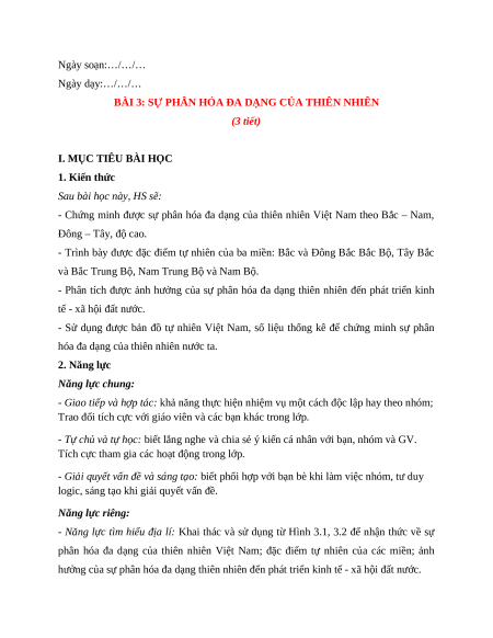 BÀI 3: SỰ PHÂN HÓA ĐA DẠNG CỦA THIÊN NHIÊN (3 tiết)