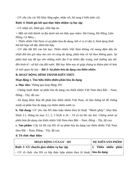 Hoạt động 1. Tìm hiểu thiên nhiên phân hóa đa dạng