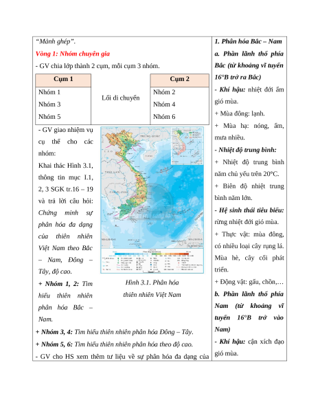 thiên nhiên Việt Nam theo Bắc – Nam, Đông – Tây, độ cao; Trình bày được đặc điểm
