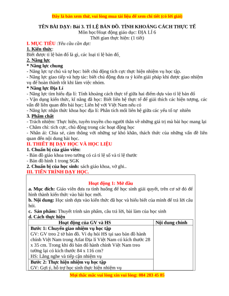 Giáo án Bài 3 Địa lí 6 Kết nối tri thức (2024): Tỉ lệ bản đồ. Tính khoảng cách thực tế dựa vào tỉ lệ bản đồ