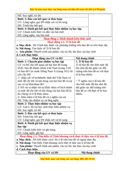 Hoạt động 2.2: Tìm hiểu về Tính khoảng cách thực tế dựa vào tỉ lệ bản đồ