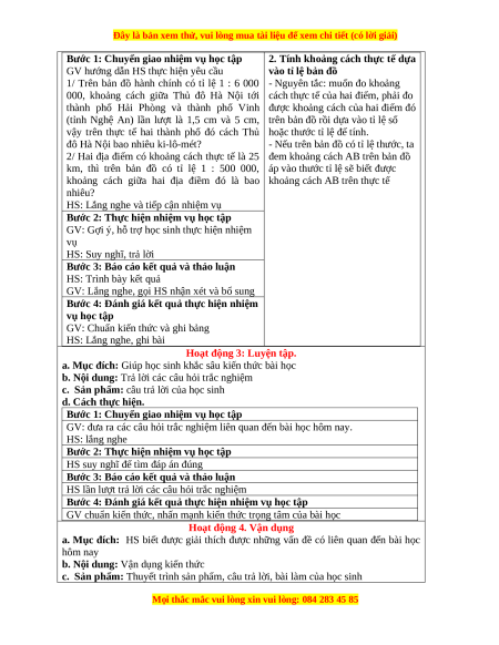 - Năng lực tìm hiểu địa lí: Tính khoảng cách thực tế giữa hai điểm dựa vào tỉ lệ bản đổ