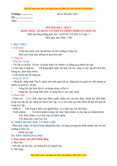 - Hình ảnh, video về một số hoạt động khai thác, sử dụng tài nguyên thiên nhiên; bảo vệ môi trường ở châu Âu. - Phiếu học tập.