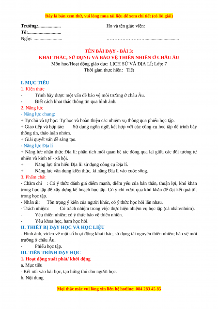 Môn học/Hoạt động giáo dục: LỊCH SỬ VÀ ĐỊA LÍ; Lớp: 7