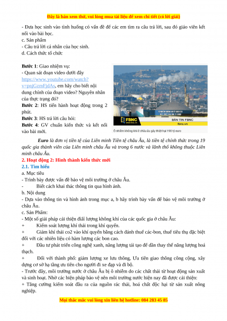 - Dựa vào thông tin và hình ảnh trong mục a, b hãy trình bày vấn đế báo vệ môi trường ở châu Âu. c. Sản Phẩm: