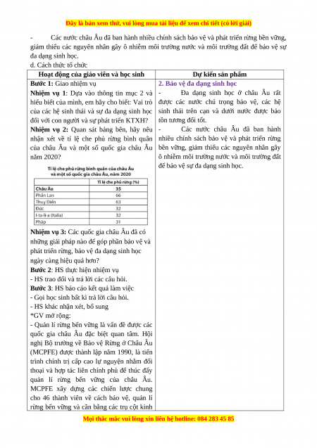 - Dựa vào thông tin và hình ảnh trong mục 2 trình bày vấn đề bảo vệ đa dạng sinh học ở châu Âu. c. Sản Phẩm -
