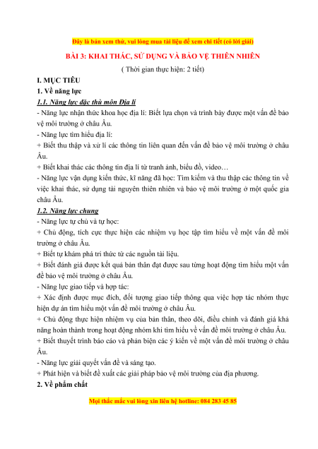 việc khai thác, sử dụng tài nguyên thiên nhiên và bảo vệ môi trường ở một quốc gia châu Âu. 1.2. Năng lực chung