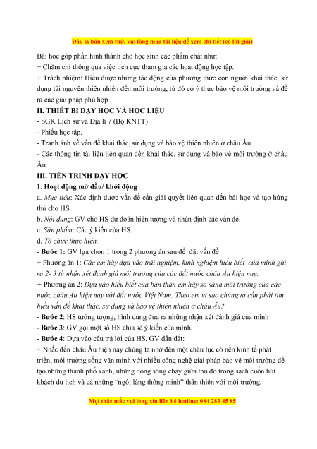 Giáo án Bài 3 Địa lí 7 Kết nối tri thức (Phiên bản 2): Khai thác, sử dụng và bảo vệ thiên nhiên ở châu Âu