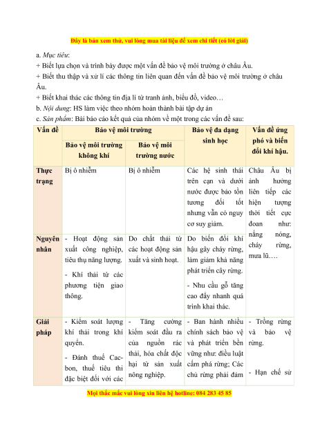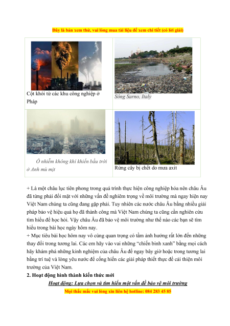 + Biết thu thập và xử lí các thông tin liên quan đến vấn đề bảo vệ môi trường ở châu Âu.