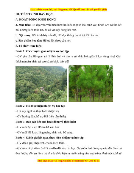 - GV yêu cầu HS quan sát 2 hình ảnh và tìm ra sự khác biệt giữa 2 loại rừng này? Giải