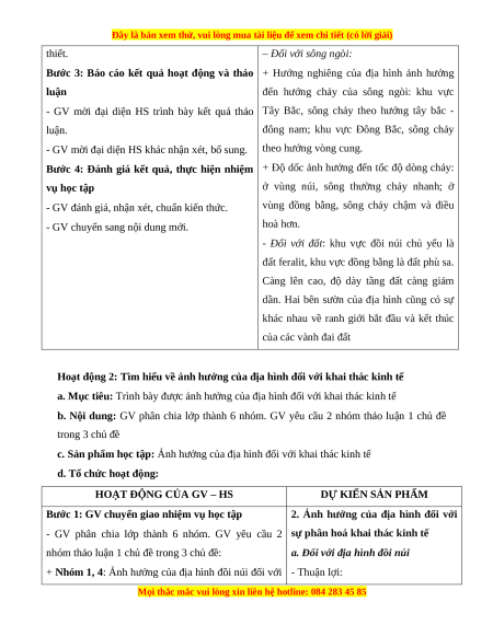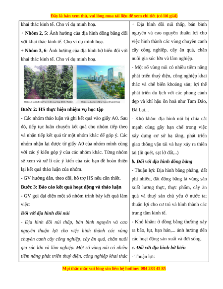 a. Mục tiêu: Trình bày được ảnh hưởng của địa hình đối với khai thác kinh tế