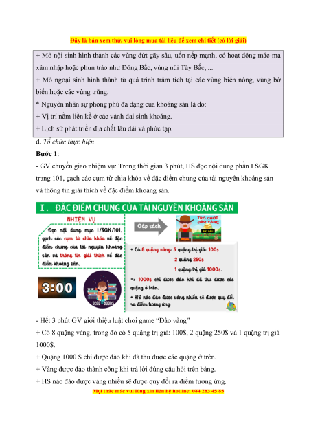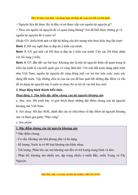 Bước 4: GV dẫn dắt vào bài học: Khoáng sản là một tài nguyên thiên rất quan trọng là