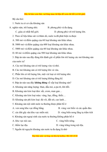 Đây là bản xem thử, vui lòng mua tài liệu để xem chi tiết (có lời giải)