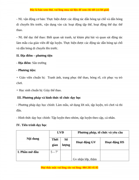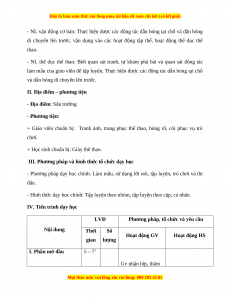 - Phương pháp dạy học chính: Làm mẫu, sử dụng lời nói, tập luyện, trò chơi và thi đấu.