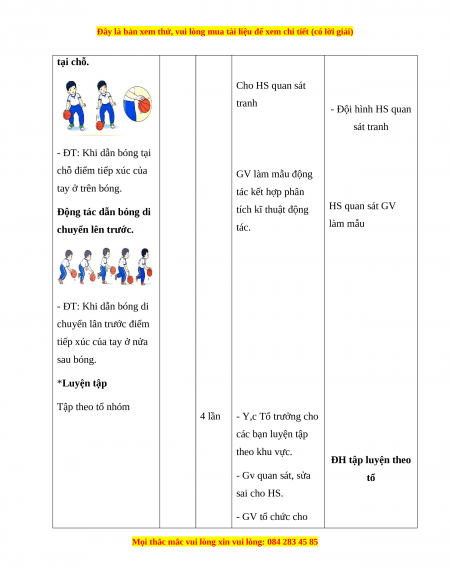 - Hình thức dạy học chính: Tập luyện theo nhóm, tập luyện theo cặp, cá nhân.