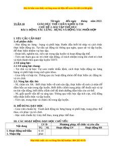 Ủ Ề 2: BÀI TẬP TH D Ể C Ụ BÀI 3: Đ N Ộ G TÁC L N Ư G - B N Ụ G VÀ Đ N Ộ G TÁC PH I Ố H P Ợ I. YÊU CẦU CẦN ĐẠT 1.v ph ề m ẩ chất: - H c ọ đ ng ộ tác l ng ư - b ng ụ và ph i ố h p. ợ Bư c ớ đ u ầ bi t ế hô nh p ị và cách th c ứ th c ự hi n ệ đ ng ộ tác. Tự s a ử sai đ ng