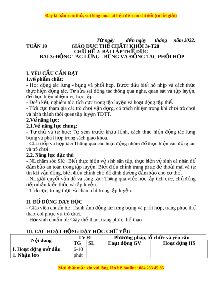 TU N 10Ầ GIÁO D C TH CH T( KH I 3)-T20Ụ Ể Ấ Ố