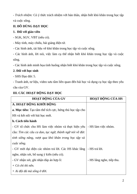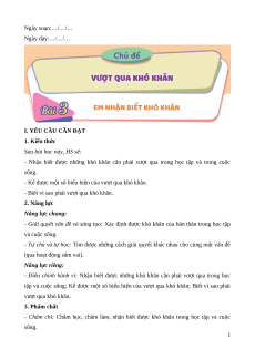 tập và cuộc sống; Kể được một số biểu hiện của vượt qua khó khăn; Biết vì sao phải vượt qua khó khăn. 3. Phẩm chất
