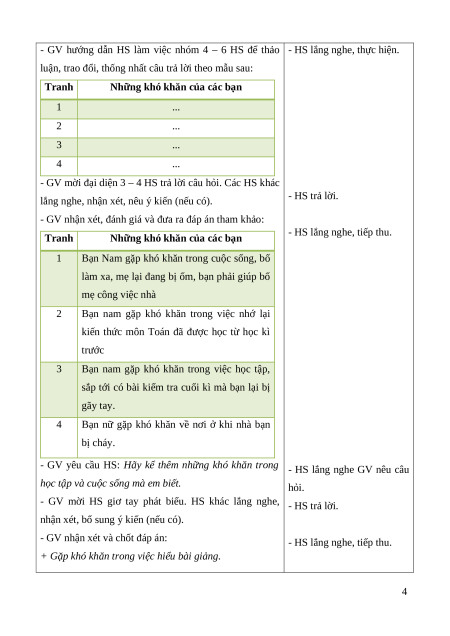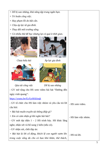 - Nhận biết được những khó khăn cần phải vượt qua trong học tập và trong cuộc sống.