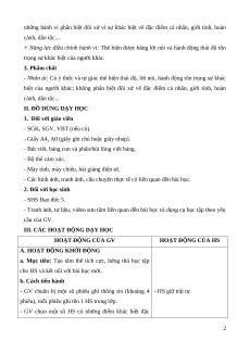+ Nhận thức chuẩn mực hành vi: Kể được một số biểu hiện tôn trọng sự khác biệt