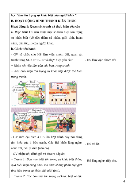 - Kể được một số biểu hiện tôn trọng sự khác biệt (về đặc điểm cá nhân, giới tính,