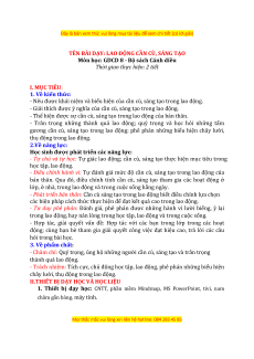 với nội dung lời câu hỏi bài học. HĐ1: Hs nghiên Dạy học Đánh Máy Power - Học sinh cứu thông nhóm giá tính, Point, nêu được tin, làm việc qua Tivi khái niệm theo nhóm sản Phiếu cần cù, sáng trả lời câu phẩm học tạo trong hỏi học tập lao động. tập - Nêu được biểu hiện cần cù, sáng Hình tạo trong thành lao động. kiến thức mới HĐ 2: Hs nghiên Dạy học Đánh MT, Power - Nêu được cứu thông nhóm giá Tivi Point, ý nghĩa của tin, trao đổi qua Phiếu cần cù, sáng cặp đôi và sản học tạo trong trả lời câu phẩm tập lao động. hỏi học tập HĐ 3: Học sinh Dạy học Quan MT, Power - Biết được đọc tình nhóm sát Tivi- Point cách rèn huống, thảo Giấy
