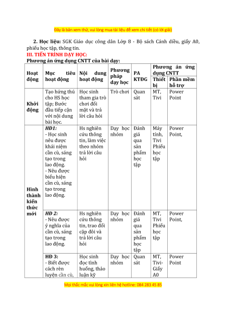 2. Học liệu: SGK Giáo dục công dân Lớp 8 - Bộ sách Cánh dieu, giay A0,