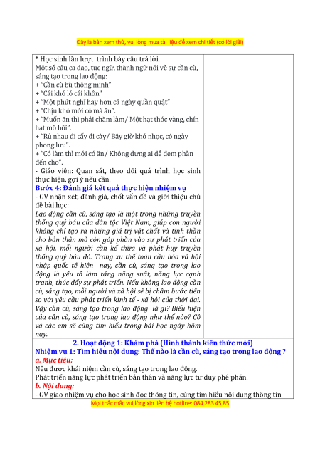 TÊN BÀI DẠY: LAO ĐỘNG CẦN CÙ, SÁNG TẠO