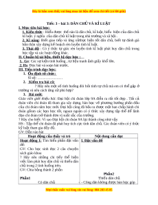 3. Thái độ : Có ý th c ứ tự giác rèn luy n ệ tính kỉ lu t ậ phát huy dân chủ trong h c ọ t p và các ậ ho t ạ đ ng khác. ộ II. Chu n b ẩ t ị ài li u, t ệ hi t ế b d ị y h ạ c ọ : 1. G v : Các s ki ự ện tình huống , t l ư i u t ệ ranh nh gi ả y kh ấ l ổ n. ớ 2. Hs: Đ c bài ọ và so n bài ạ trư c. ớ III. Ti n t ế rình d y h ạ c: ọ 1. Ổ n đ nh t ị ch ổ c: ứ