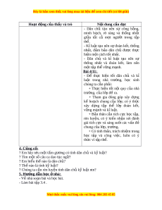 ủ Các đoàn viên có ý th c ứ k l ỷ u t ậ tham gia đ y đ ầ . ủ GV: Dẫn vào bài Hoạt đ ng c ộ a t ủ h y và t ầ rò N i ộ dung c n đ ầ t ạ Hoạt đ ng ộ 1: Tìm hi u ể ph n ầ đ t ặ v n ấ I. Đặt vấn đề đ : ề GV: Cho h c ọ sinh đ c ọ 2 câu chuy n ệ sách giáo khoa ? Hãy nêu nh ng ữ chi ti y ế thể hi n ệ