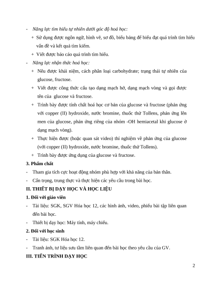- Trình bày được ứng dụng của glucose và fructose. 2. Năng lực