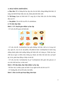 c. Sản phẩm: Câu trả lời của HS về carbohdrate.