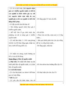 ạ : Tham gia tích c c ự vào các trò ch i ơ , ho t ạ đ n ộ g khám phá ki n ế th c ứ . - Năng l c ự giao ti p ế và h p ợ tác: Th c ự hi n ệ t t ố nhi m ệ vụ trong ho t ạ đ n ộ g nhóm. Năng l c ự riêng: - Th c ự hành thí nghi m ệ đ n ơ gi n ả làm s ch ạ n c. ướ 1 M i