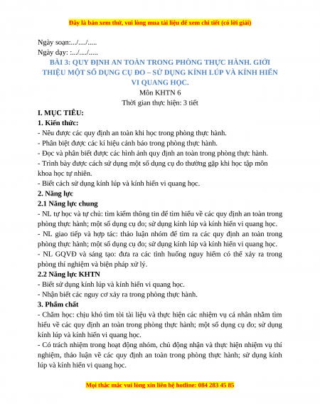 nghiệm, thảo luận về các quy định an toàn trong phòng thực hành; sử dụng kính