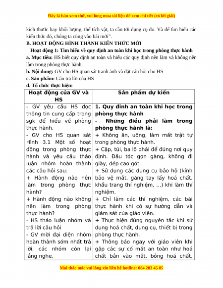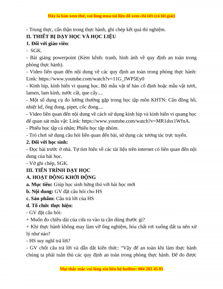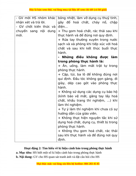 - Bài giảng powerpoint (Kèm kênh: tranh, hình ảnh về quy định an toàn trong phòng thực hành).