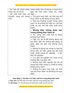 - Nhận biết các nguy cơ xảy ra trong phòng thực hành. 3. Phẩm chất