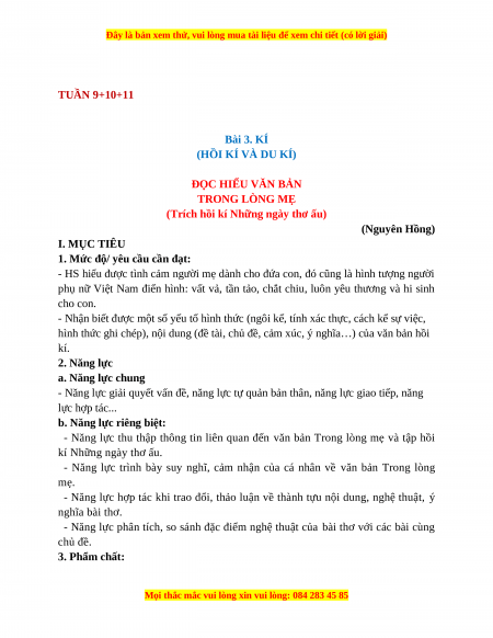 TUẦN 9+10+11 Bài 3. KÍ (HỒI KÍ VÀ DU KÍ)