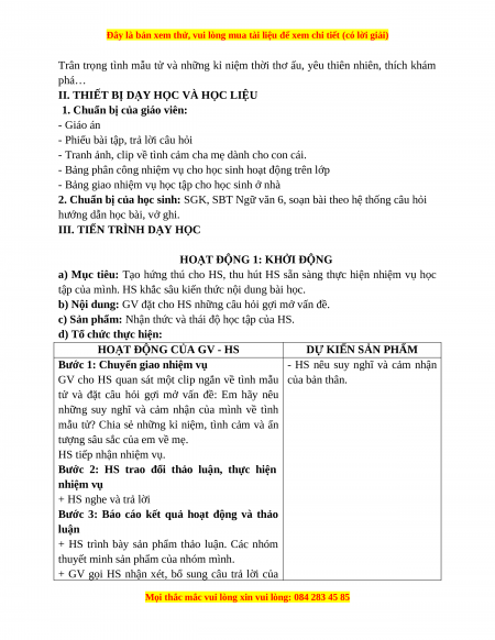 ĐỌC HIỂU VĂN BẢN TRONG LÒNG MẸ