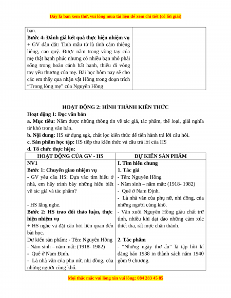 Bước 2: HS trao đổi thảo luận, thực - Văn xuôi Nguyên Hồng giàu chất trữ hiện nhiệm vụ