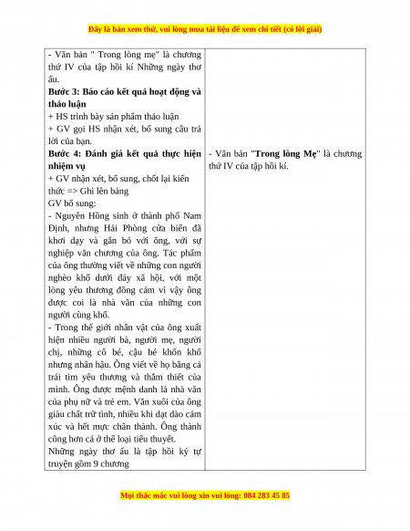 Bước 4: Đánh giá kết quả thực hiện - Văn bản "Trong lòng Mẹ" là chương nhiệm vụ