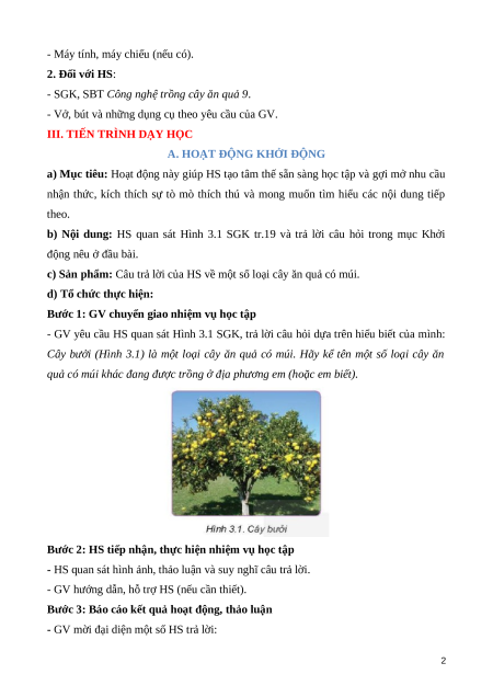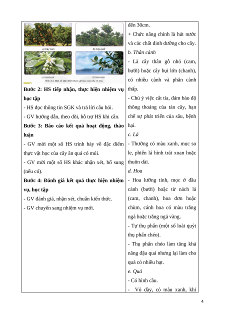 Giáo án Bài 3: Kĩ thuật trồng và chăm sóc cây ăn quả có múi Công nghệ 9 Trồng cây ăn quả Kết nối tri thức