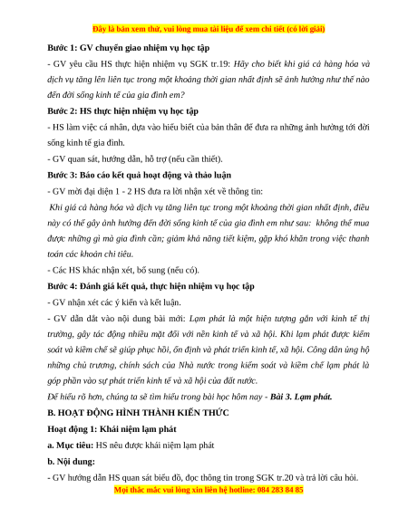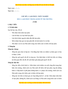 BÀI 3. LẠM PHÁT TRONG KINH TẾ THỊ TRƯỜNG (3 tiết) I. MỤC TIÊU 1. Về kiến thức Sau bài học này, HS sẽ: