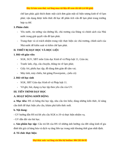 phát; vận dụng được kiến thức đã học để phân tích vấn đề lạm phát trong trường hợp cụ thể. 3. Phẩm chất: