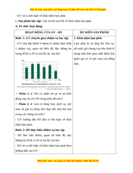 - GV chia lớp thành 4 nhóm (2 nhóm thực hiện Lạm phát là sự tăng lên liên tục