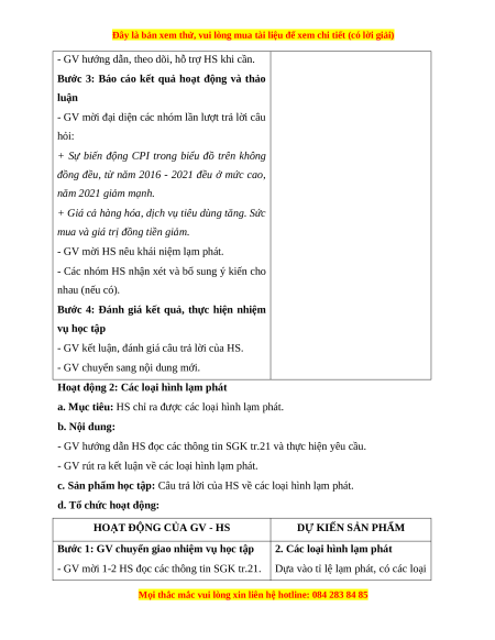 phát; vận dụng được kiến thức đã học để phân tích vấn đề lạm phát trong trường