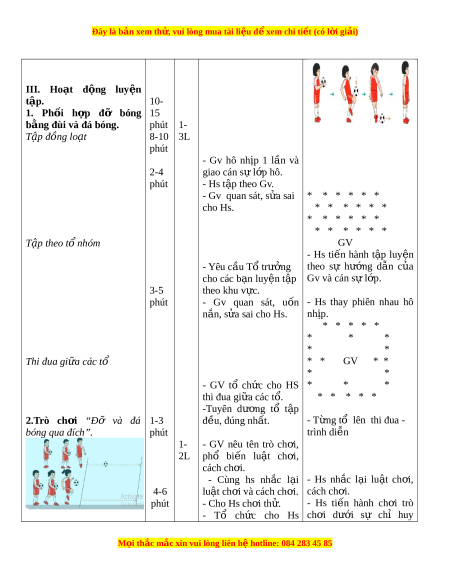Đây là bản xem th , vu ử i lòng mua tài li u ệ đ xe ể m chi ti t (c ế ó l i ờ gi i ả ) III. Hoạt đ ng ộ luy n ệ tập. 10- 1. Ph i ố h p ợ đỡ bóng 15