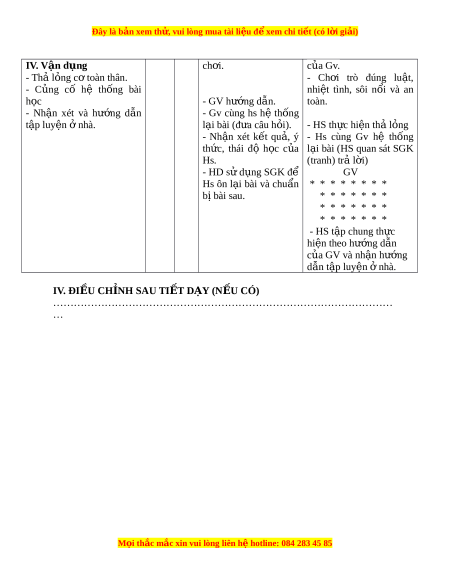 Đây là bản xem th , vu ử i lòng mua tài li u ệ đ xe ể m chi ti t (c ế ó l i ờ gi i ả ) IV. Vận dụng ch i ơ . c a G ủ v. - Thả l ng c ỏ t ơ oàn thân. - Ch i ơ trò đúng lu t ậ , - C ng ủ cố hệ th ng ố bài nhi t ệ tình, sôi n i ổ và an h c ọ - GV hư ng d ớ ẫn. toàn. - Nh n ậ xét và hư ng ớ d n ẫ - Gv cùng hs hệ th ng ố t p l ậ uyện nhà. ở l i ạ bài (đ a câu h ư i ỏ ). - HS th c ự hi n t ệ hả l ng ỏ - Nh n ậ xét k t ế qu ,