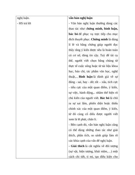 luận, bác bỏ, giải thích, phân tích, so sánh trong văn bản nghị luận.